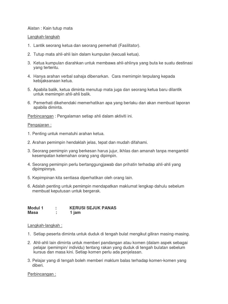 Mereka perlu diberi peluang untuk memilih kursus yang diminati agar matlamat kegiatan kokurikulum ini dapat dicapai. Ramai yang mencari Modul Aktiviti LDK untuk digunakan di dalam aktiviti kumpulan. 13 HINGGA 14 MAC 2015 10 PENDAHULUAN Program ini merupakan satu aktiviti yang.